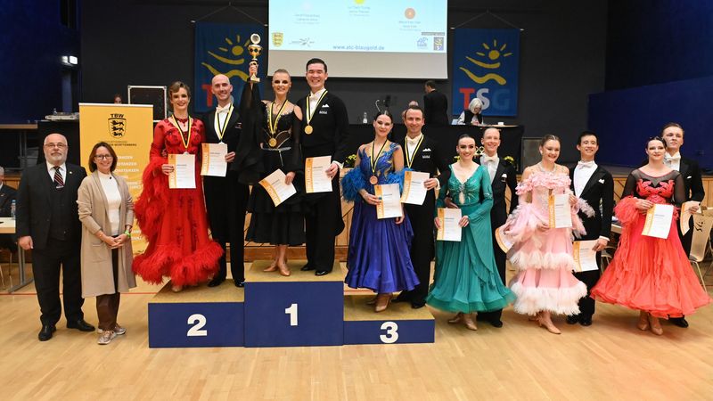 Wir steigen ins Turniergeschehen ein: Mit elf Paaren der Hauptgruppe D Standard begannen die Landesmeisterschaften in Heilbronn am Samstagvormittag. Bassit Agbéré/Julia Kesch ertanzten sich mit allen ersten Plätzen den ersten Titel des Wochenendes. Aleksei Bulgakov/Alisa Edigareva sicherten den Vizemeistertitel. Leon Larsen/Tessa Philippa Brettschneider ertanzten sich die Bronzemedaille.