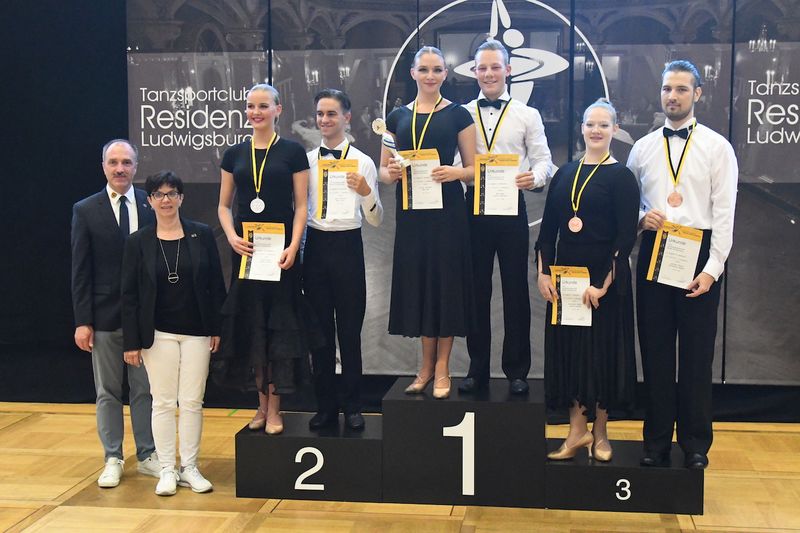 Landesmeister 2019 bei den Kindern C Standard sind Yannic Zoller/Valerie Badt vom TSC Rot-Weiß Öhringen. Die Goldmedaille bei den Junioren I B ging an Kyrylo Avtushko/Chiara Rapino vom Tanzsportzentrum Stuttgart-Feuerbach. Bestes TBW-Paar der Junioren II B sind Konstantin Literski/Nicole Sokolow vom Schwarz-Weiß-Club Pforzheim. Und den letzten Meistertitel des Tages holten sich in der Jugend A Standard die Vorjahressieger Marco Ziga/Melody Badt vom Tanzsportzentrum Stuttgart-Feuerbach.