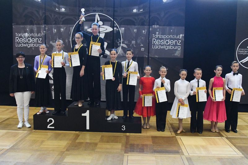 Der Tag begann morgens mit den jüngsten Tänzerinnen und Tänzern, den Kindern I/II. Der ausrichtende TSC Residenz Ludwigsburg hatte in der Innenstadthalle das große Parkett ausgelegt, auf dem die "Kleinen" noch etwas verloren wirkten. Aber im Laufe des Tages wurden die Paare immer größer und das Parkett schrumpfte gefühlt immer mehr.