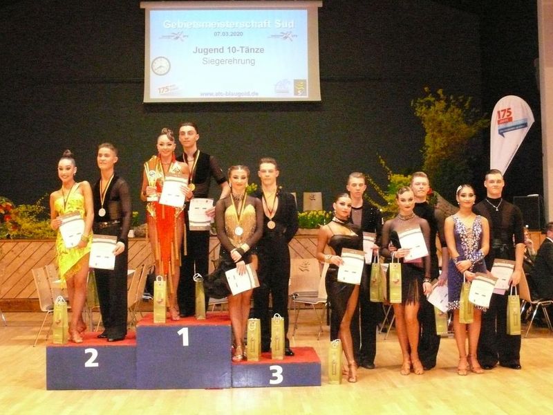 In der Jugend tanzten Marco Ziga/Melody Badt so leistungsstark an, dass die alle zehn Tänze für sich entschieden und mit Bestnoten den Meistertitel holten. Silber ging an die Bayern Maximilian Moser/Alisa Wilhelm und Laurin Mächtig/Xenia Stubert vom TSZ Stuttgart-Feuerbach schnappten sich Bronze.